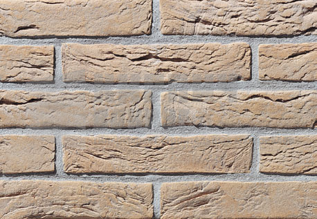 Жёлтый кирпич с мелким песком даёт облицовочной поверхности сходство с облицовкой из кирпича без песка, создавая эффект кирпича вырезанного в камне.