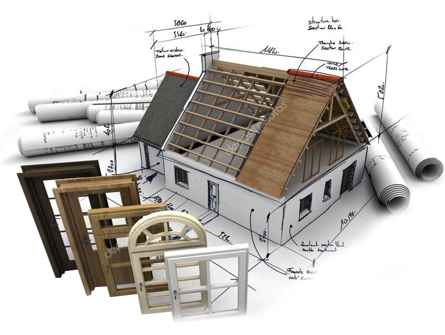 Для реализации архитектурных замыслов мы разрабатываем раздел КР (конструктивные решения) который включает все необходимые для строительства чертежи: